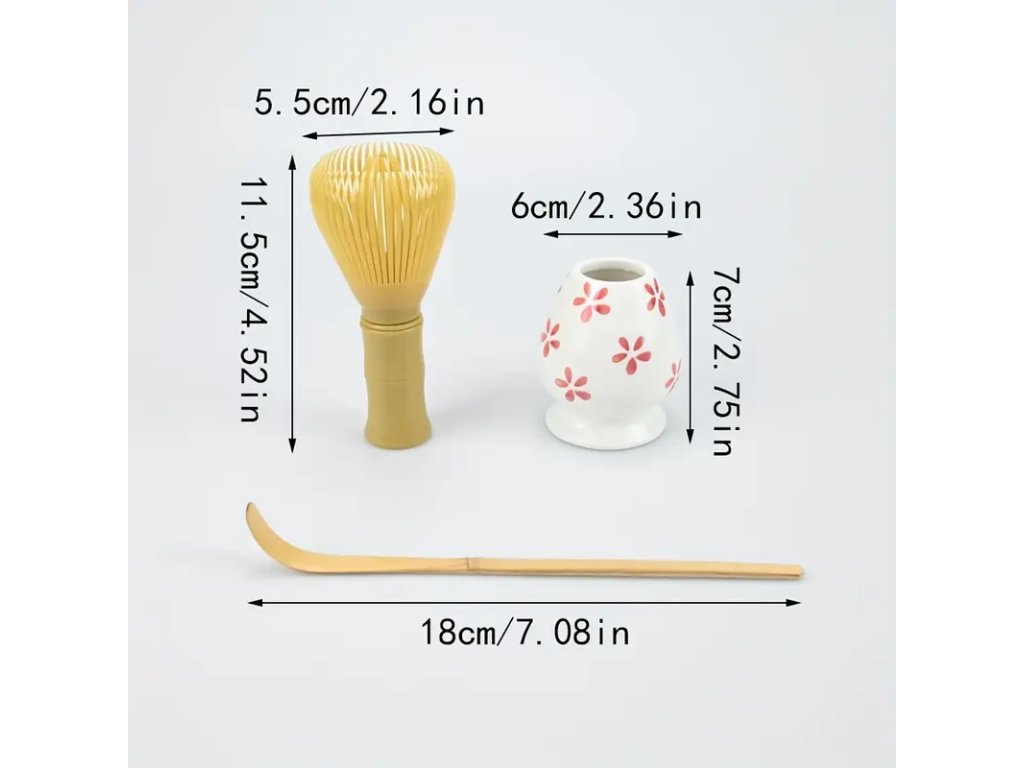 Bambusový metličkový šľahač (Chasen): Tento jemný krasavec s jemnými bambusovými prútikmi dokonale rozmieša váš matcha prášok do hladkého krému. Už žiadne hrudky! Je vyrobený ručne a jeho jemná žltá farba vám vyčaruje úsmev na tvári.