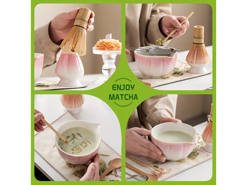 Ponorte sa do japonskej tradície s naším 8-dielnym Matcha setom, ktorý premení každý dúšok čaju na malé umenie relaxu a dokonalosti. Elegantná ružovo-biela súprava so všetkým potrebným pre dokonalý čajový rituál – vaša vstupenka do sveta matcha mágie! 🍵✨